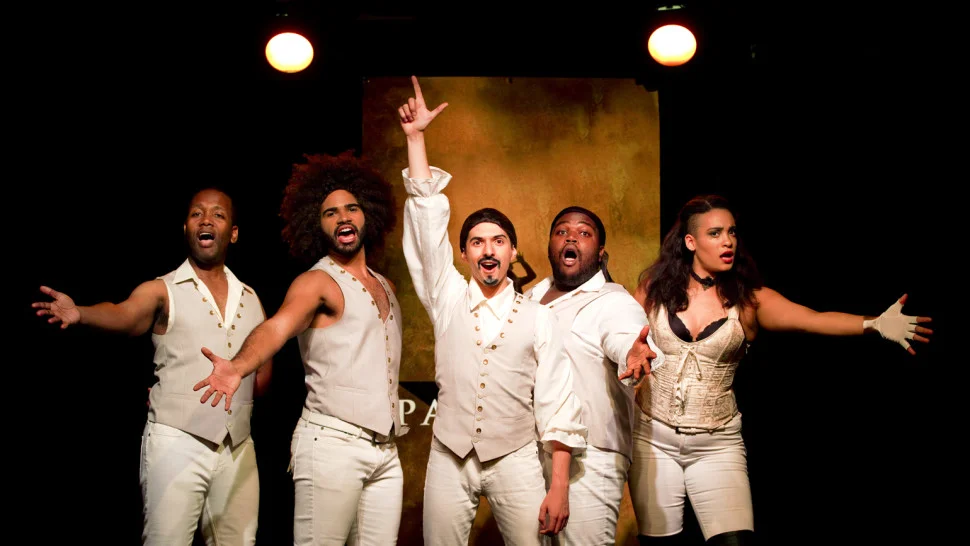 BELOW: SPAMILTON, Original New York Cast; Lin-Manuel Miranda and Fred Barton; SPAMILTON, Original Chicago Cast